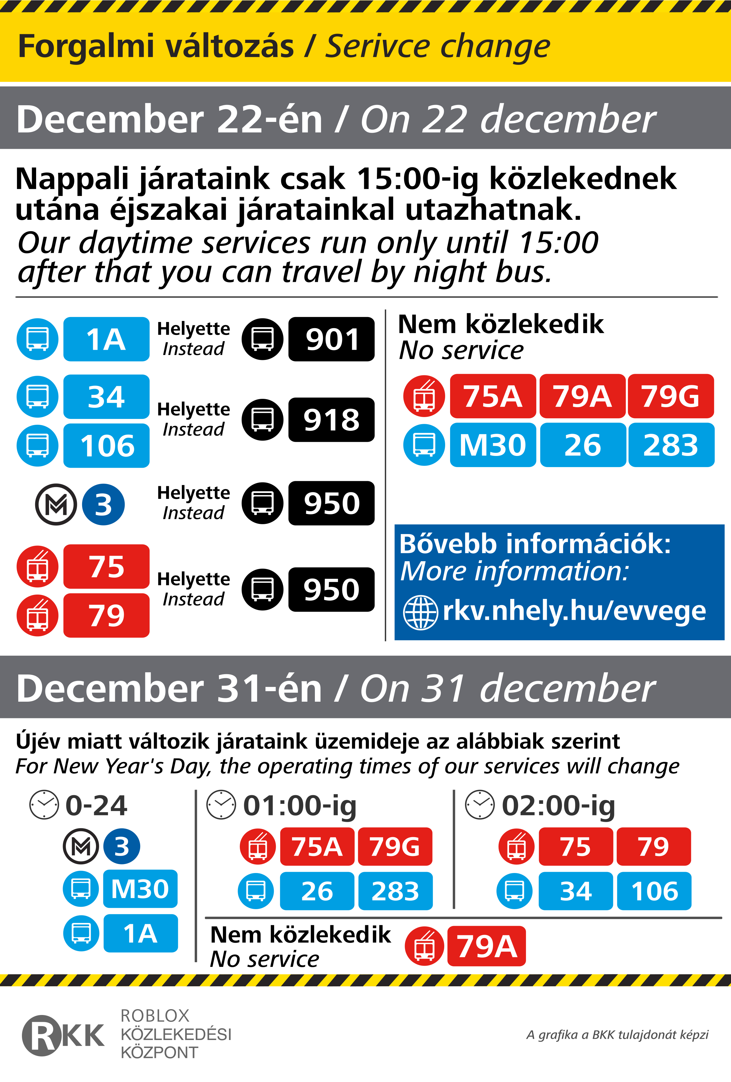 RKV Év végi közlekedési rendje